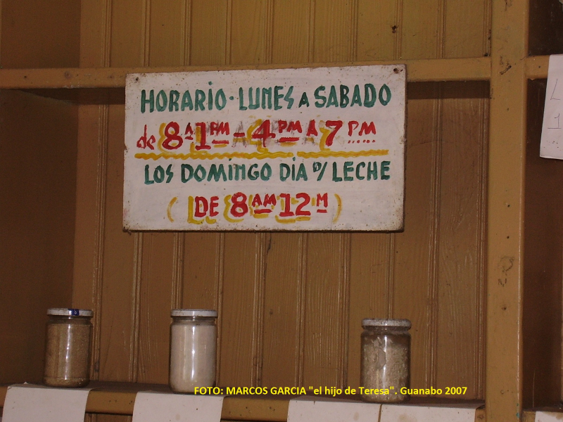 En Guanabo, La Habana. Una tienda de ¿alimentos? por la ¿libreta? visto en el año 2007. Parece que los domingos son los dias en que se puede ir a buscar la leche. O a dejarla... digo yo.