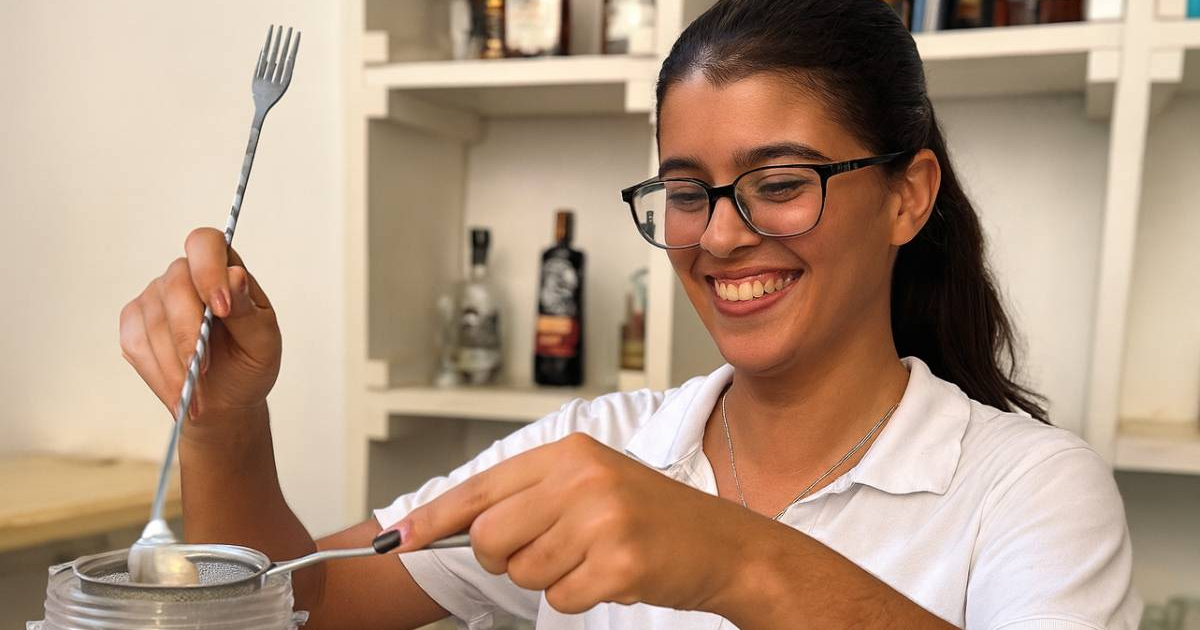 La joven explicó que, pese a haberse graduado de Medicina, decidió trabajar en un bar-restaurante para ganarse la vida. “Hace dos semanas faltó el barman y me tocó a mí asumir esa función. No sabía ni hacer un café, pero aprendí todos los cócteles”, contó con orgullo por su progreso.