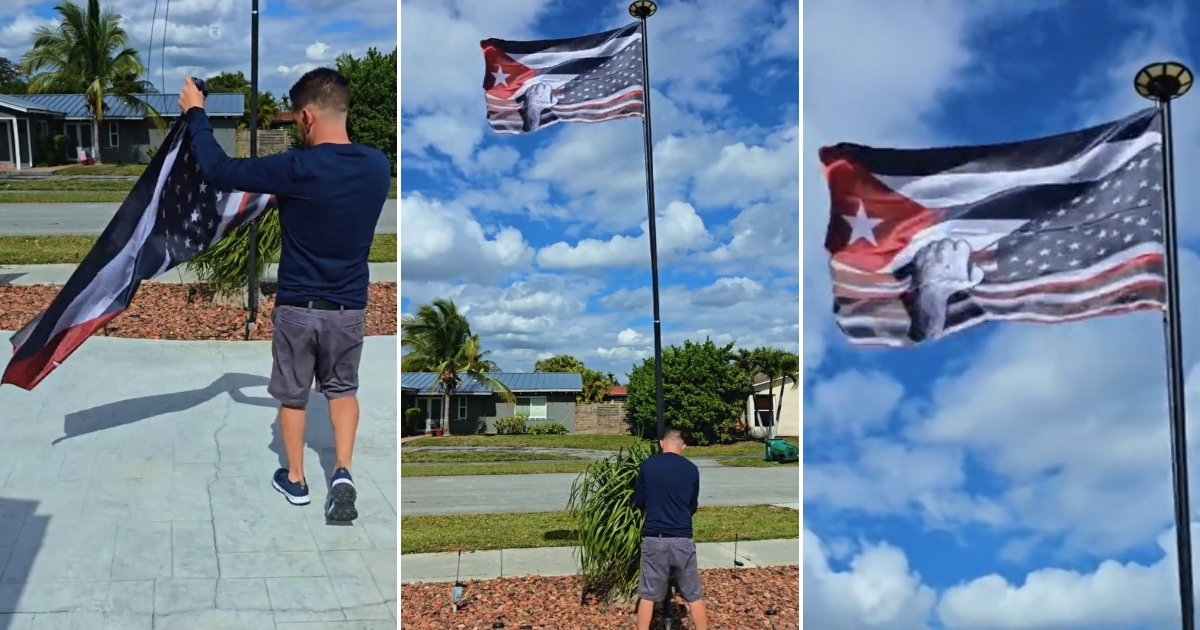 Un cubano residente en Miami ha conmovido a miles de personas en redes sociales al izar en el jardín de su casa una bandera que simboliza su esperanza en la libertad de Cuba. El video, publicado en TikTok por la cuenta @pescaenmiami, muestra el momento en que eleva una enseña que fusiona los colores de Cuba y Estados Unidos, con un puño en alto como emblema de lucha.