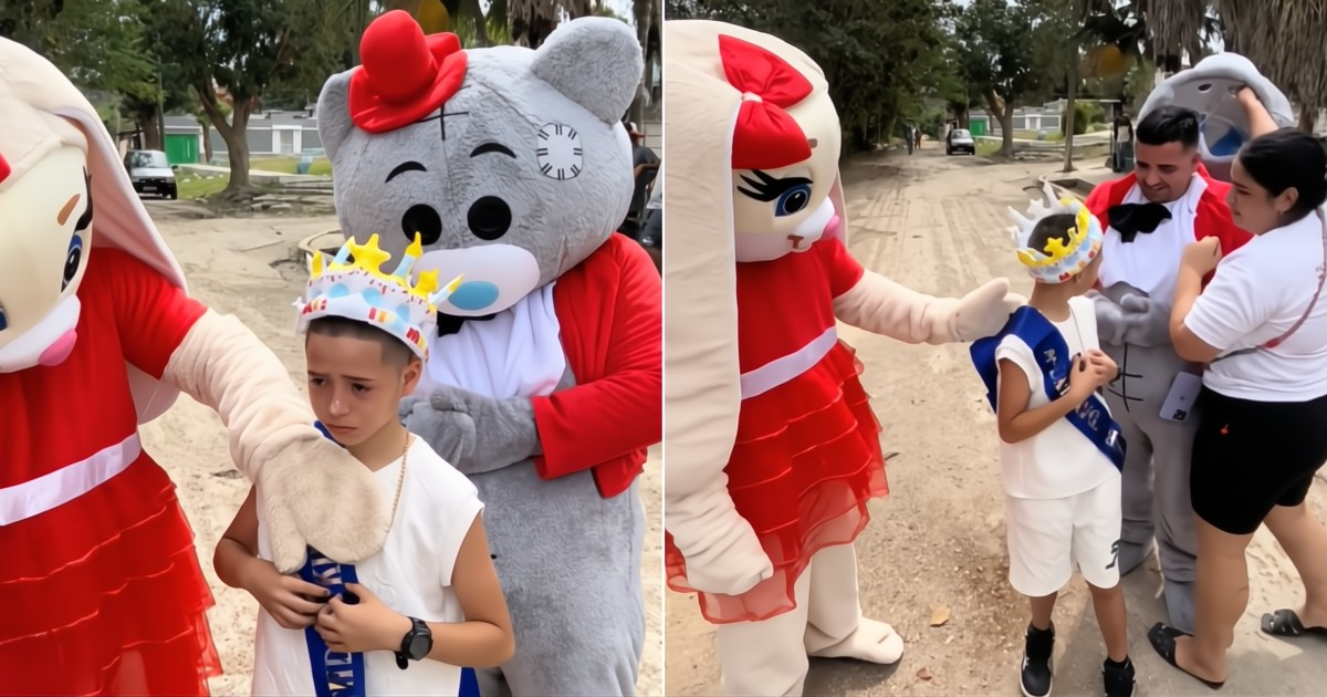 Según se aprecia en las imágenes, uno de los animadores —vestido con un traje de peluche— se acerca al menor, quien lleva una corona y una banda de cumpleaños. Sin embargo, el ambiente cambia por completo cuando el hombre se quita el disfraz y revela su identidad: era su padre, a quien no veía desde hacía tiempo.