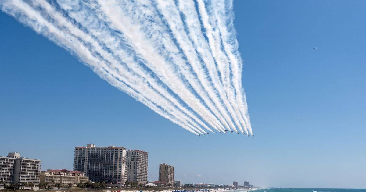 Los Blue Angels de la Marina de Estados Unidos y los Thunderbirds de la Fuerza Aérea realizaron un sobrevuelo conjunto en formación "Super Delta" sobre Pensacola Beach. Este evento fue uno de los más inusuales de los últimos años, reuniendo a 12 aviones en total: seis F/A-18 Super Hornet de los Blue Angels y seis F-16 Fighting Falcon de los Thunderbirds.