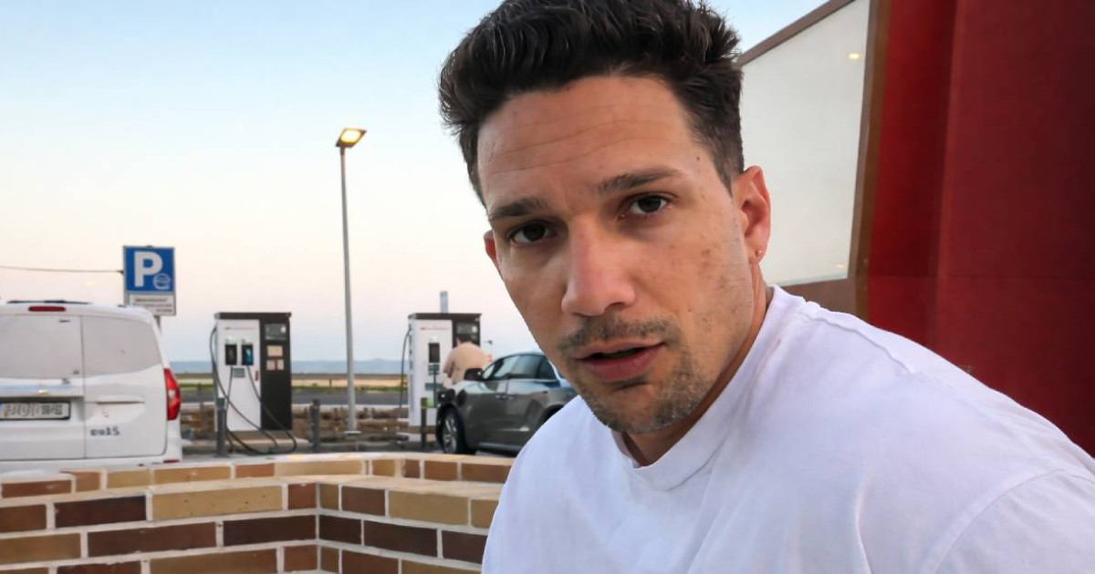 Todo comienza en el aeropuerto, cuando quien lo acompaña —presumiblemente Thaly— le indica que cargue el teléfono antes de subir al avión. Andrés, desconcertado ante la carga inalámbrica, pregunta: "¿Se enchufa?"