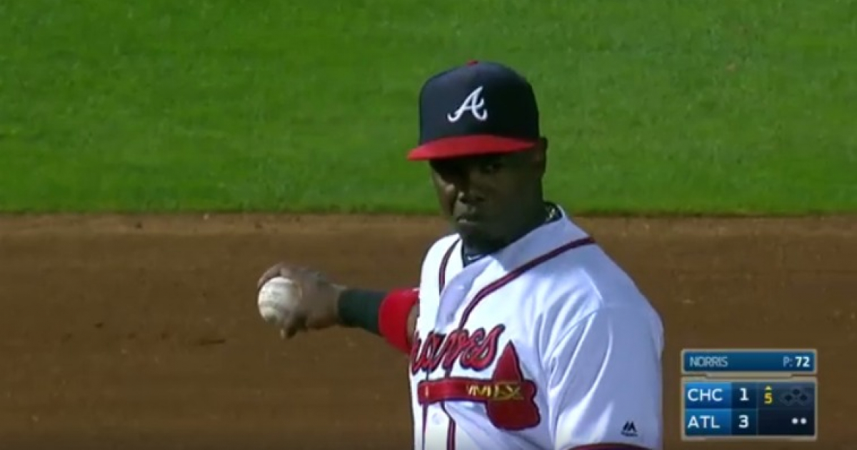 Una gran jugada del cubano Adonis García en tercera base en la reciente victoria de Los Bravos de Atlanta frente a los Chicago Cubs 5 carreras por 1. El de Ciego de Ávila demostró reflejos y un tremendo brazo teniendo que tirar a primera base desde el suelo para poder sacar out al corredor.