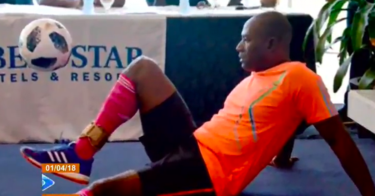 Durante una hora y diez minutos, el habanero estuvo golpeando el balón sin que cayera al suelo, aunque el peso que le sirvió de lastre para complicar la prueba le provocó una contractura en la pierna izquierda, que varió su ritmo e impidió que pudiera golpear el balón durante una hora y media, que era su deseo.