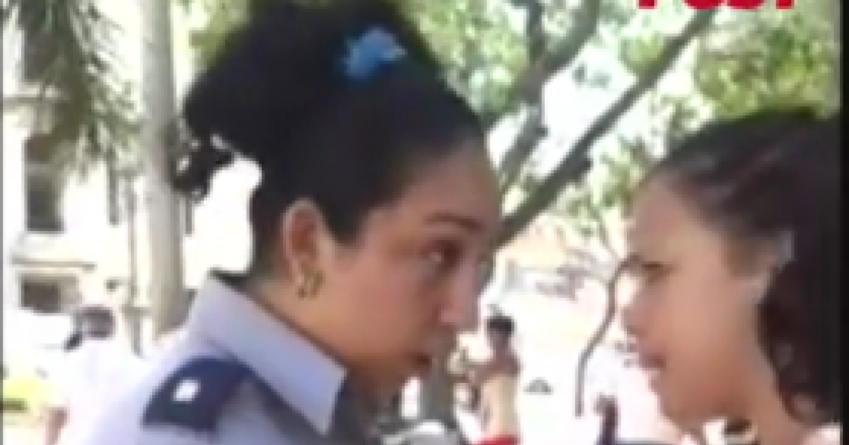 La participantes son dos mujeres: una joven y una policía; mientras una segunda joven intenta contener a su amiga y se enfrenta también ―aunque en menor grado― a la "agente del orden".