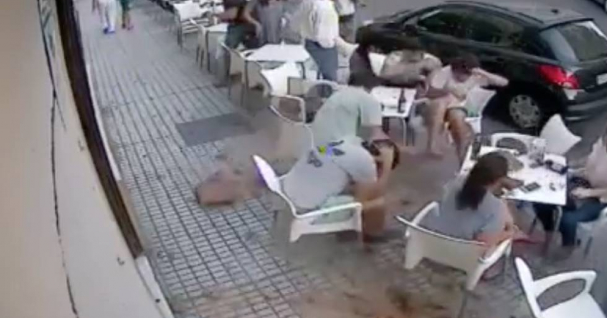 Todo quedó grabado por una cámara de seguridad en la que se ve al encargado del bar sacar su móvil para pedir ayuda.