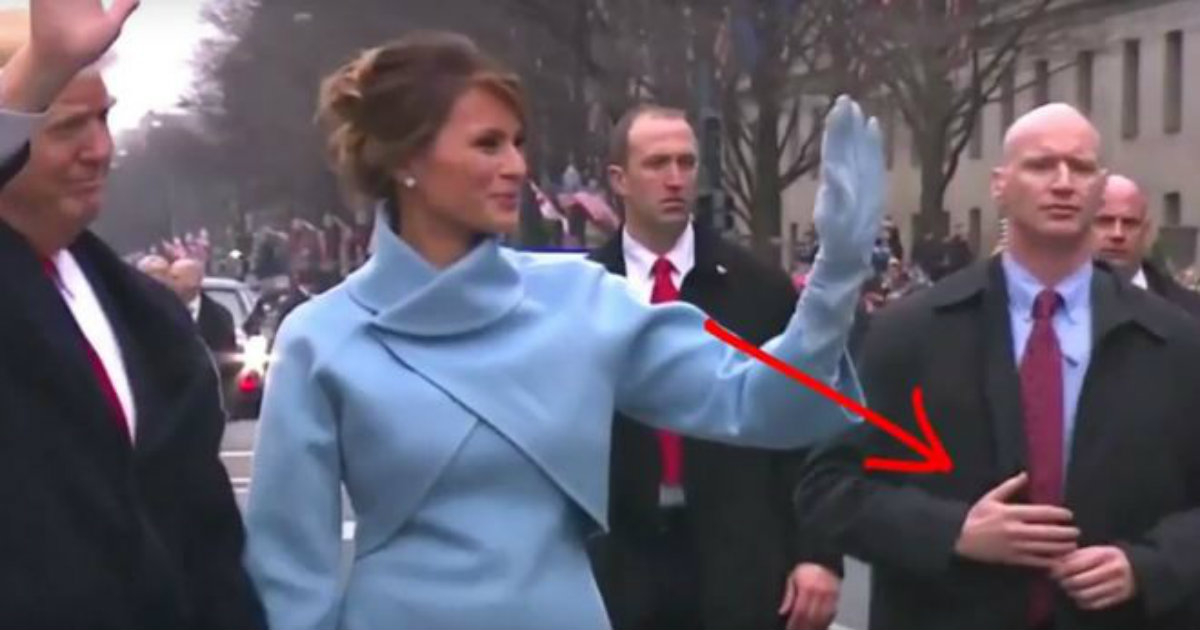 Los internautas más observadores se fijaron en que, durante el desfile, uno de los guardaespaldas que más cerca caminaba del presidente, justo detrás de Melania, mantuvo una postura forzada, complicada, y que la mantendría durante horas.